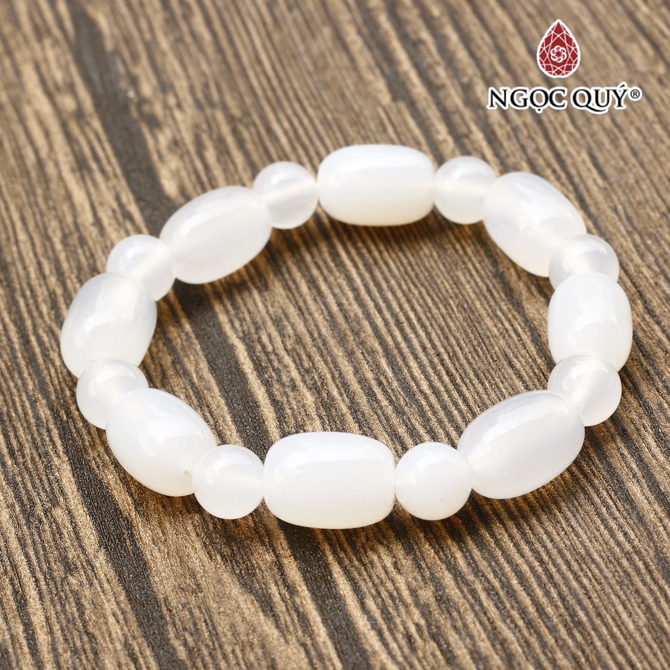 Vòng tay lu thống đá mã não trắng - Hợp mệnh kim, mệnh thủy | Ngọc Quý Gemstones |