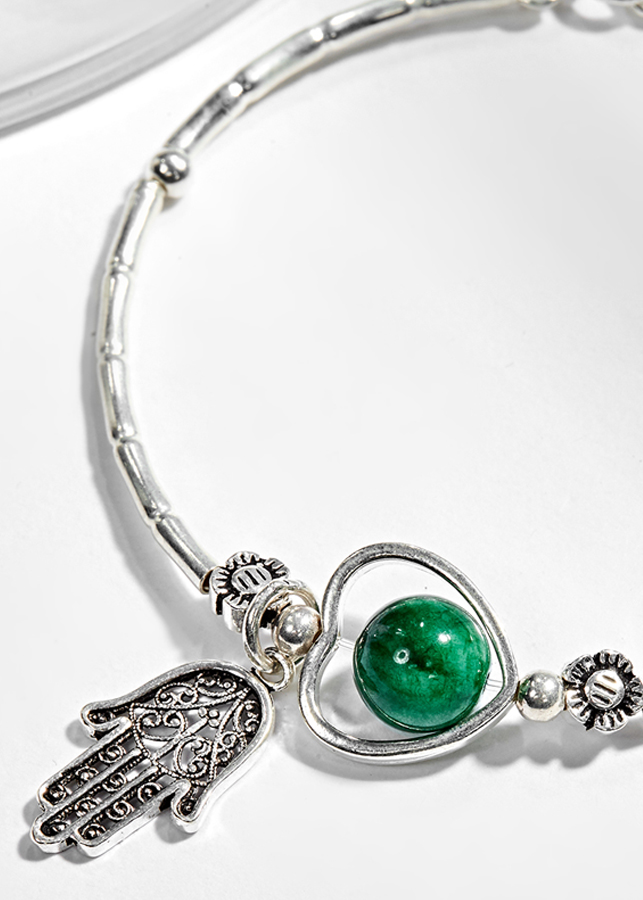 Đeo Vòng Tay Bạc 1 Hạt Đá Cẩm Thạch Phối Charm Bàn Tay Hamsa Bạc trên người tốt cho vận khí, tốt cho sức khỏe và tiền tài.