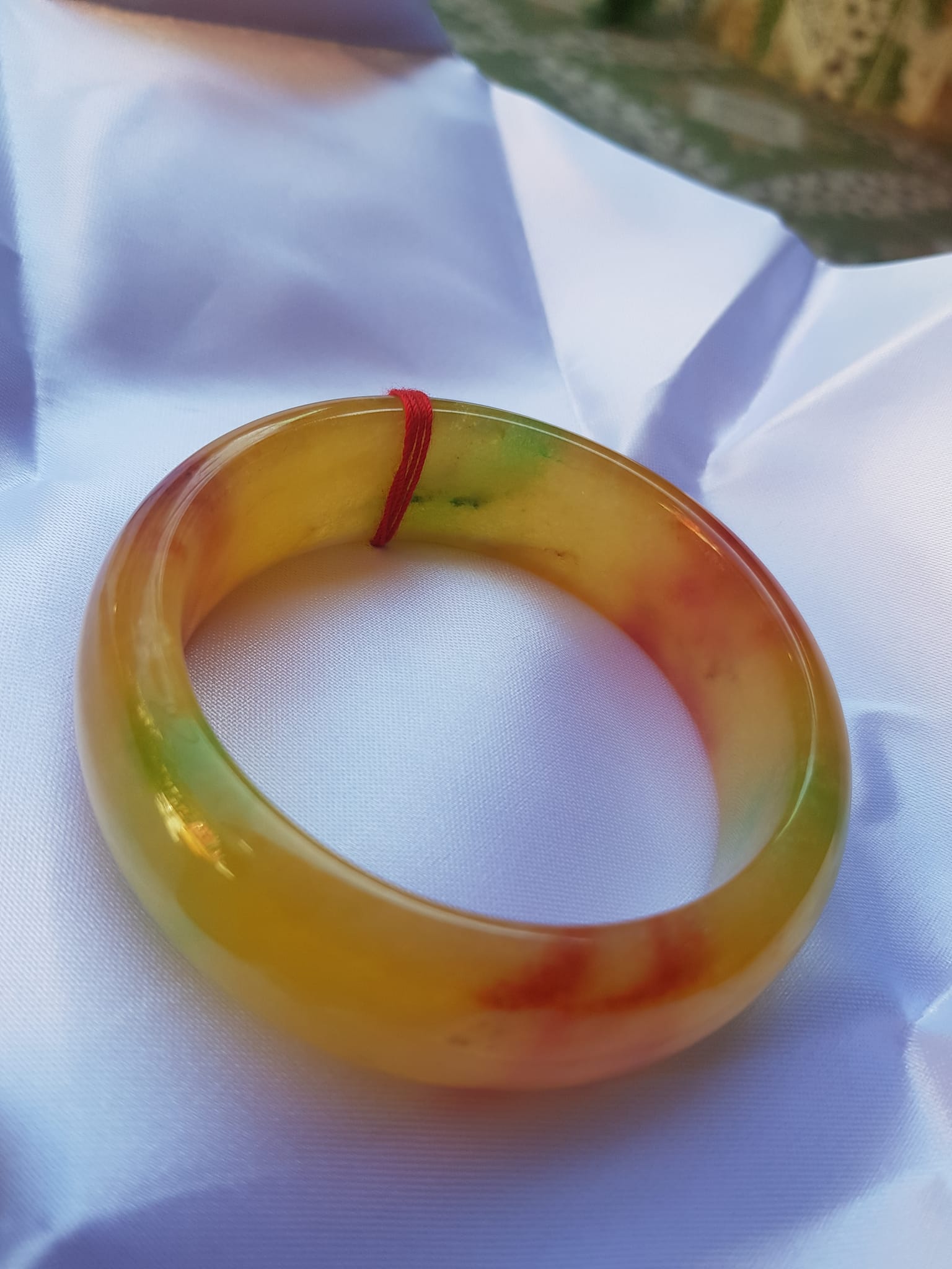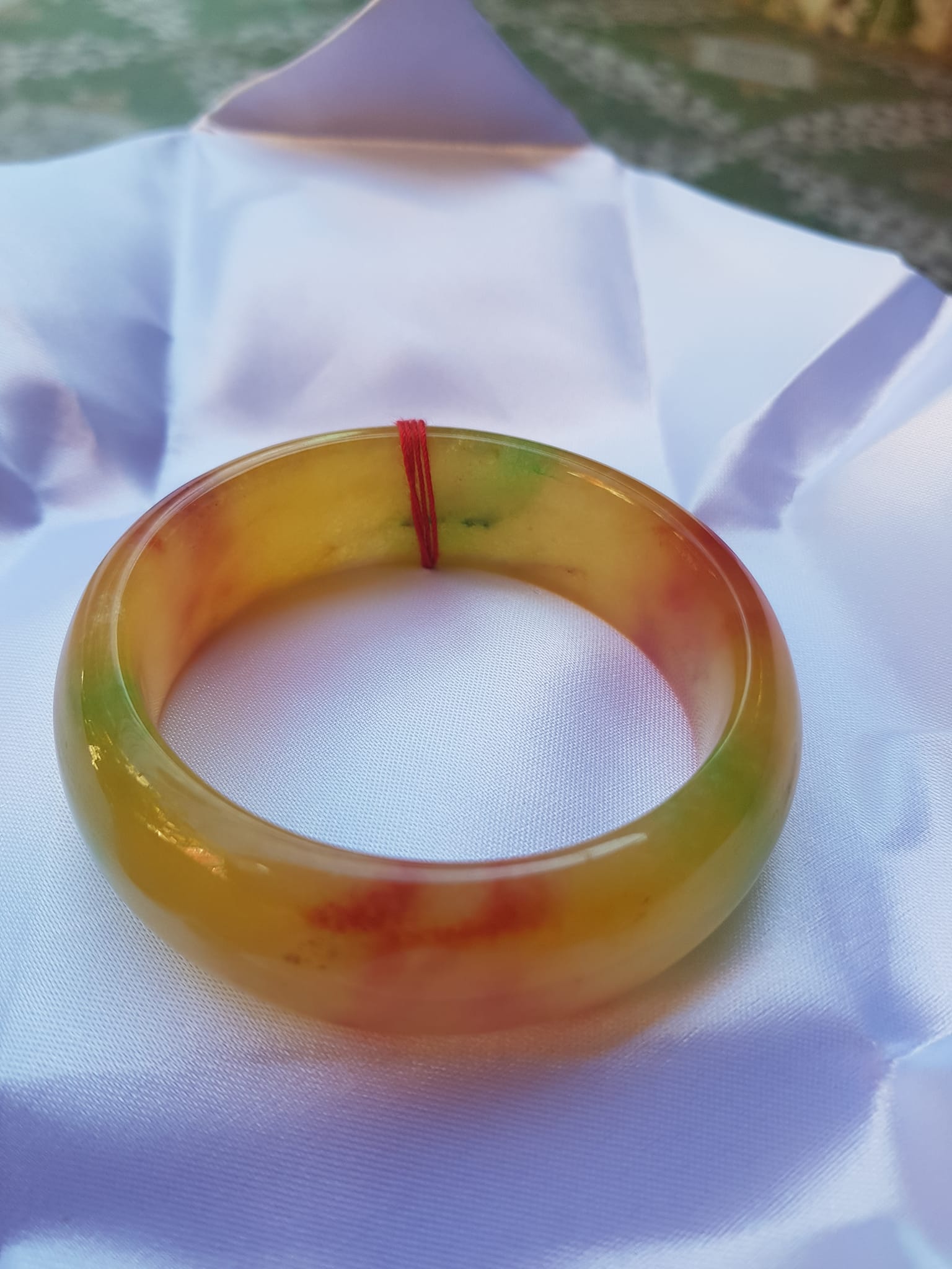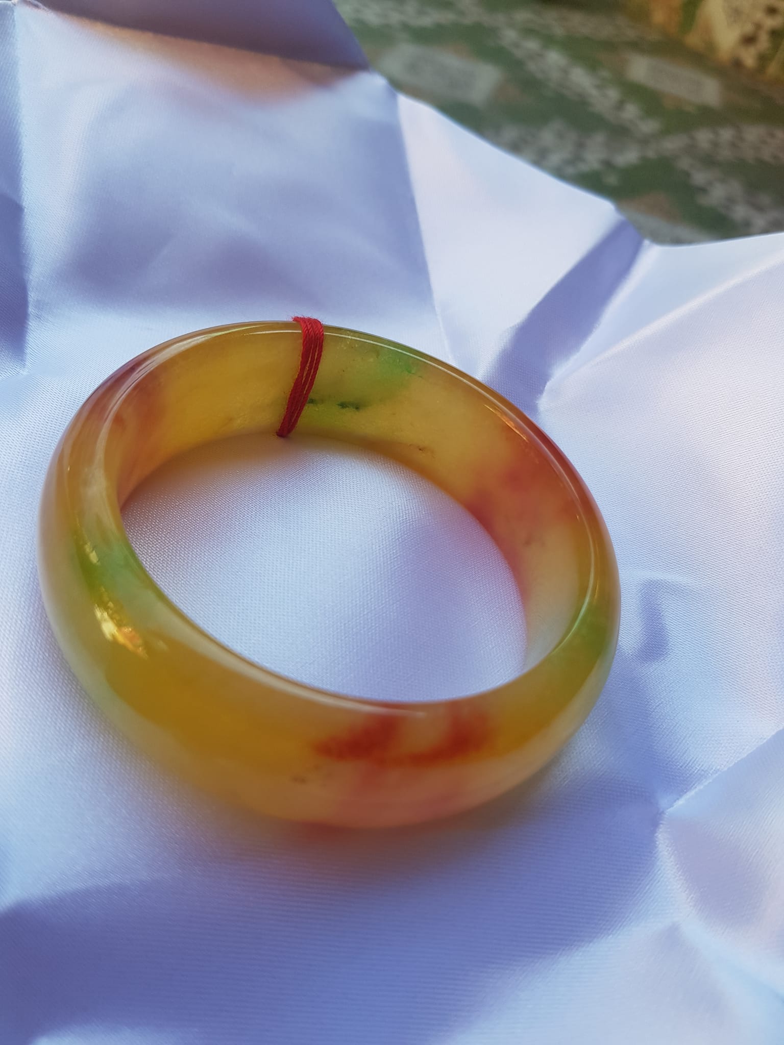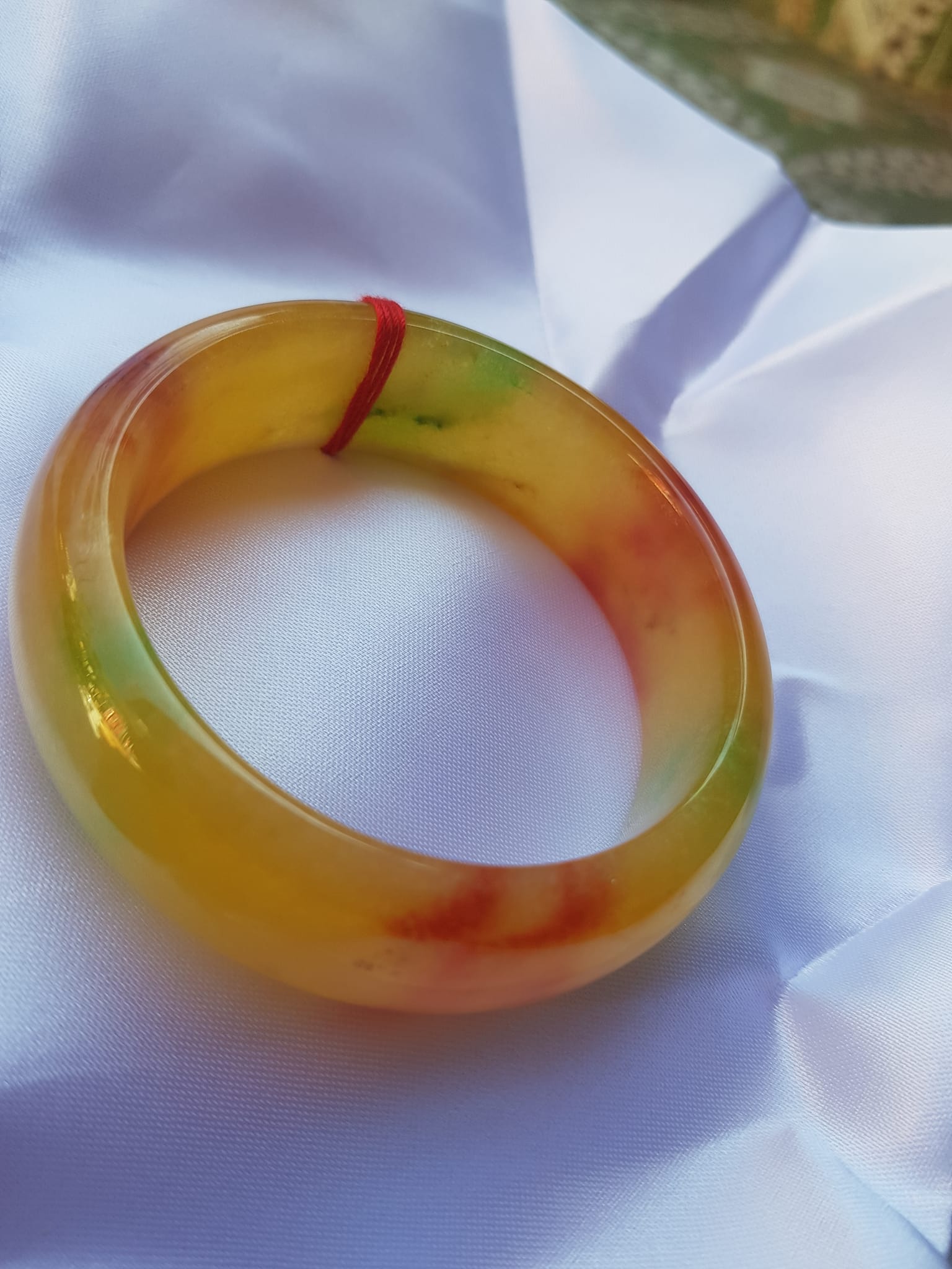 Vòng Tay Bản Hẹ Vàng Đỏ tươi bóng đẹp Size 59mm x cao 19mm x dầy 9mmChất liệu đá cẩm thạchHợp Nam Nữ mệnh Thổ mệnh Kim 60kg - 68kg đeo đẹp ạ...