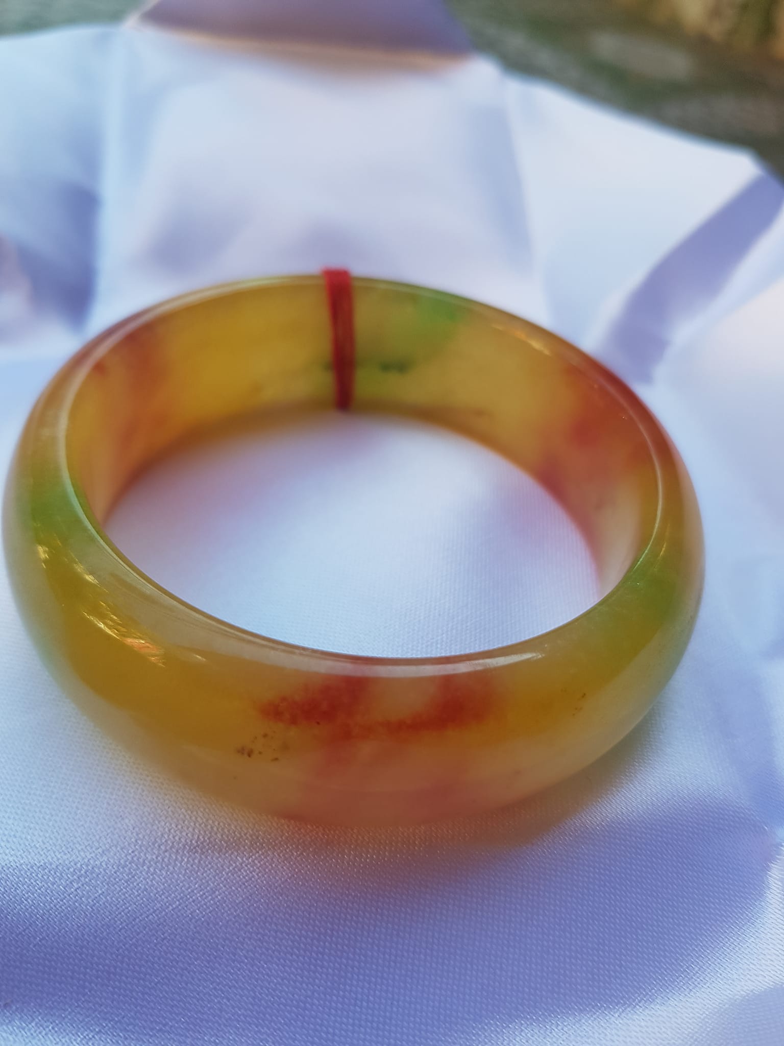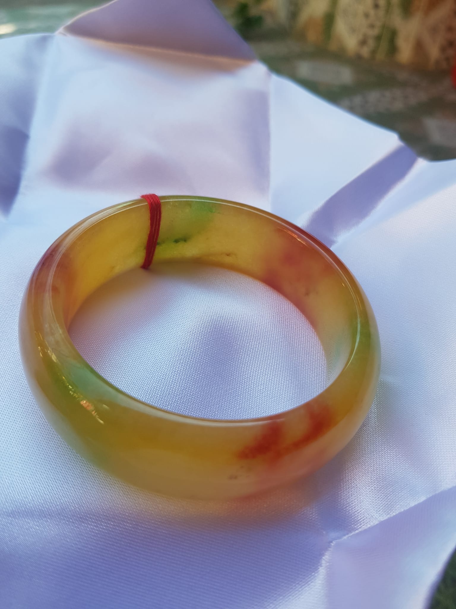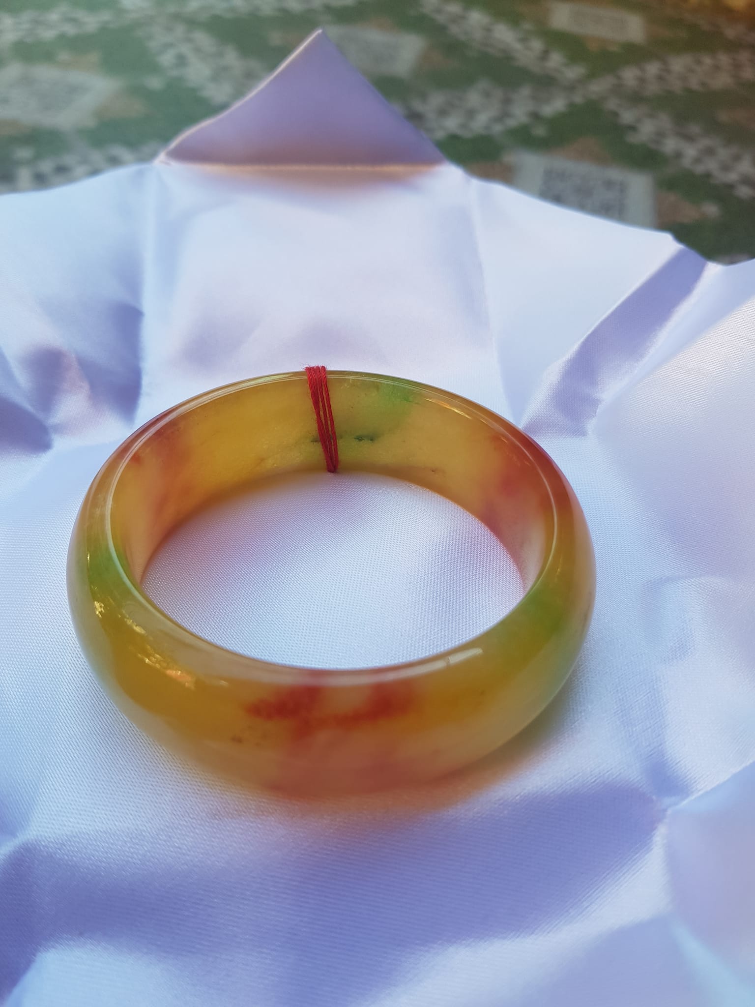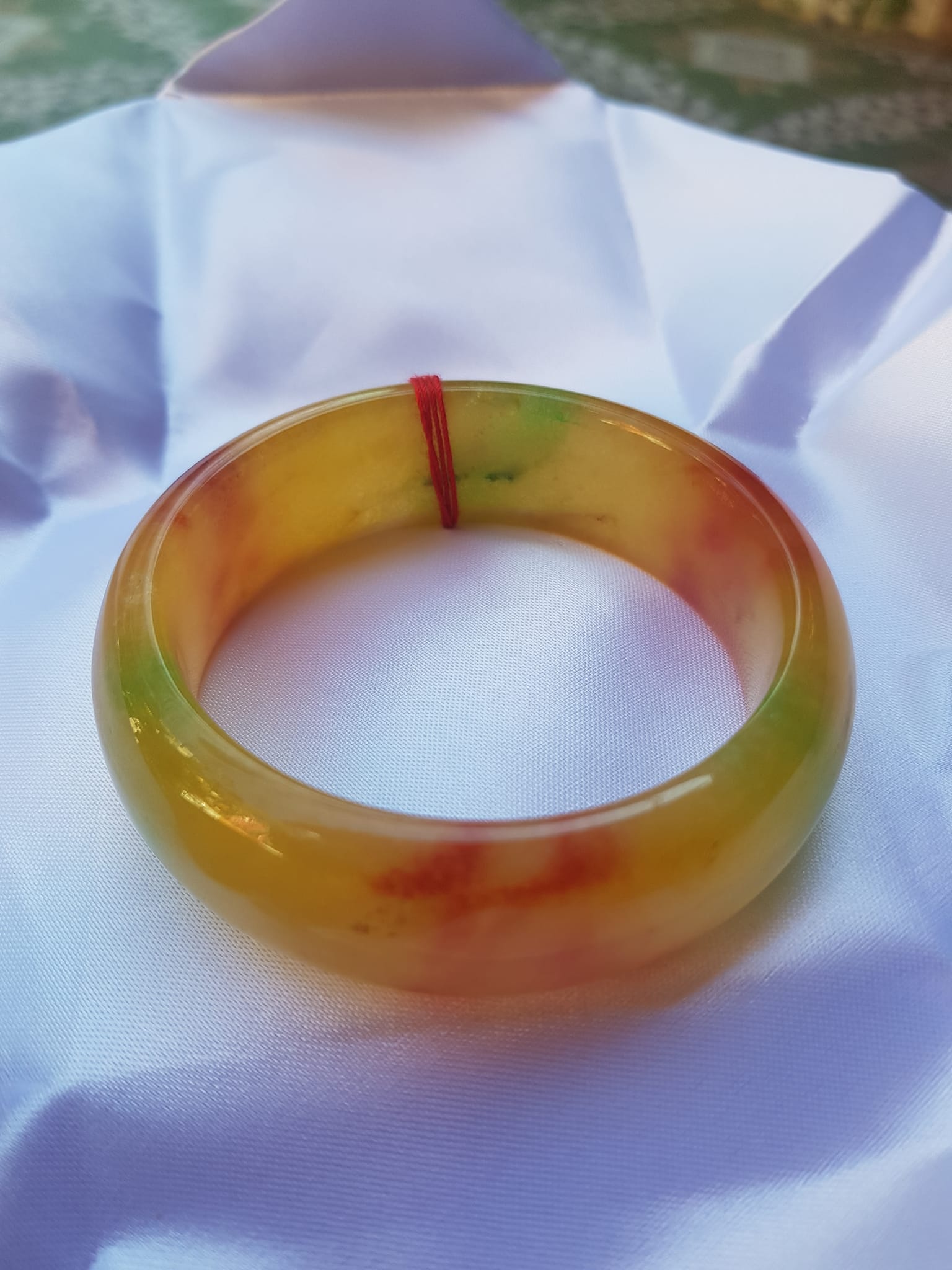 Vòng Tay Bản Hẹ Vàng Đỏ tươi bóng đẹp Size 59mm x cao 19mm x dầy 9mmChất liệu đá cẩm thạchHợp Nam Nữ mệnh Thổ mệnh Kim 60kg - 68kg đeo đẹp ạ...
