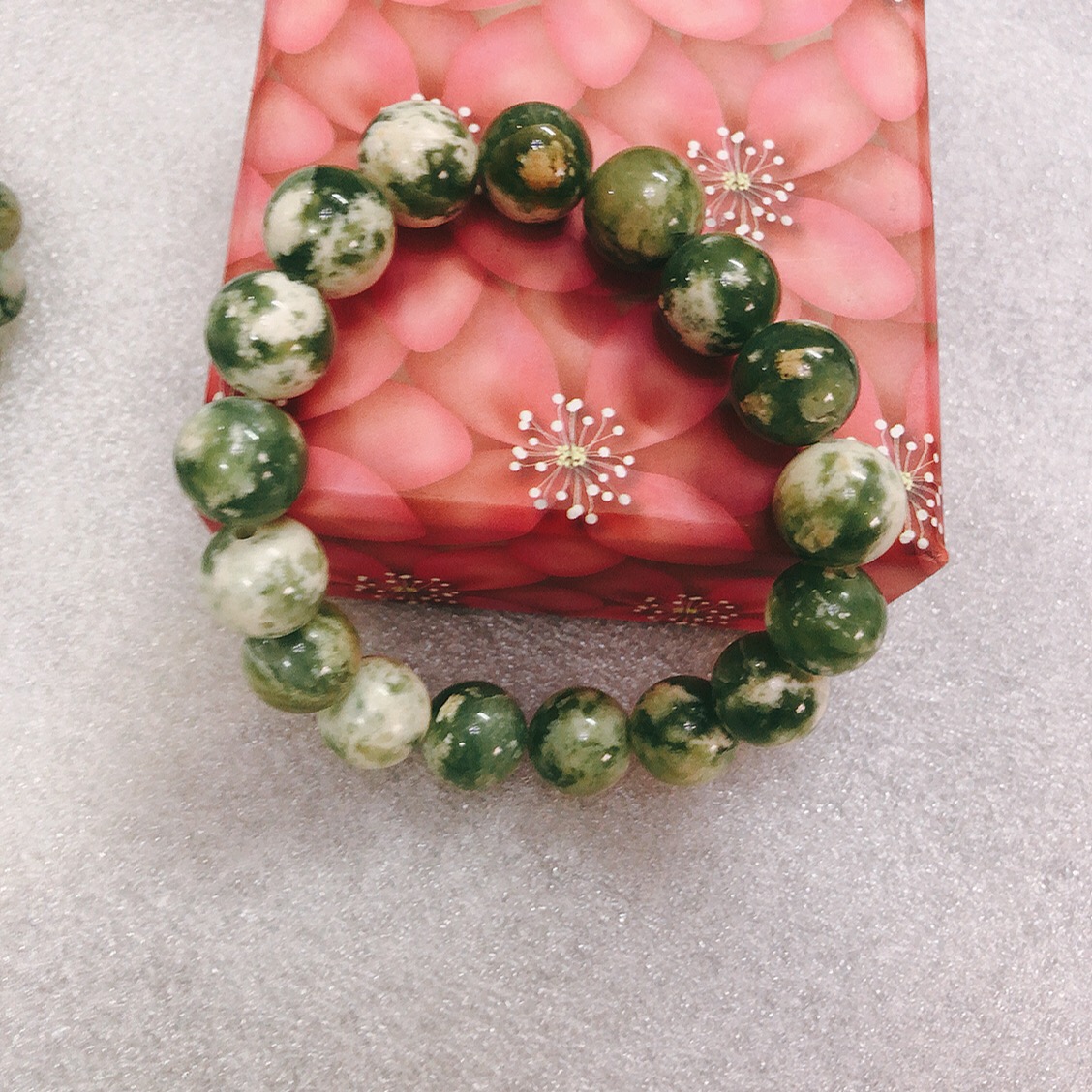 1.Vòng tay: ngọc serpentione một trăm phần trăm từ đá thật đá tự niên của VN chế tác thủ công tại Yen Bai 2.Màu xanh lá đậm, bóng láng như hình thích hợp nhất cho