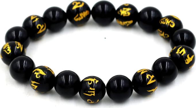 Vòng chuỗi gồm sự kết hợp giữa thạch anh đen mạ-vàng "lục tự kim ngôn" và thạch anh đen, là sản phẩm Phật giáo mang ý nghĩa an khang.