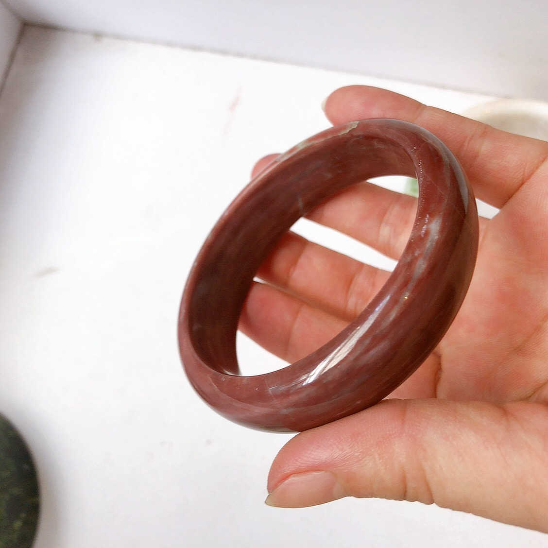 Vòng tay Nữ Bản Hẹ Mới Đá Mã Não Bông Tuyết Hồng nhẹ trắng trong bóng quá đẹp luôn ạ Ni 53mm x Cao 11mm x dầy 7mm Nữ Cân nặng 52kg - 55kg đeo