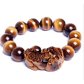 vòng đá mắt hổ nâu đỏ 12 ly mix tỳ hưu cao cấp I Trang sức vật phẩm phong thủy