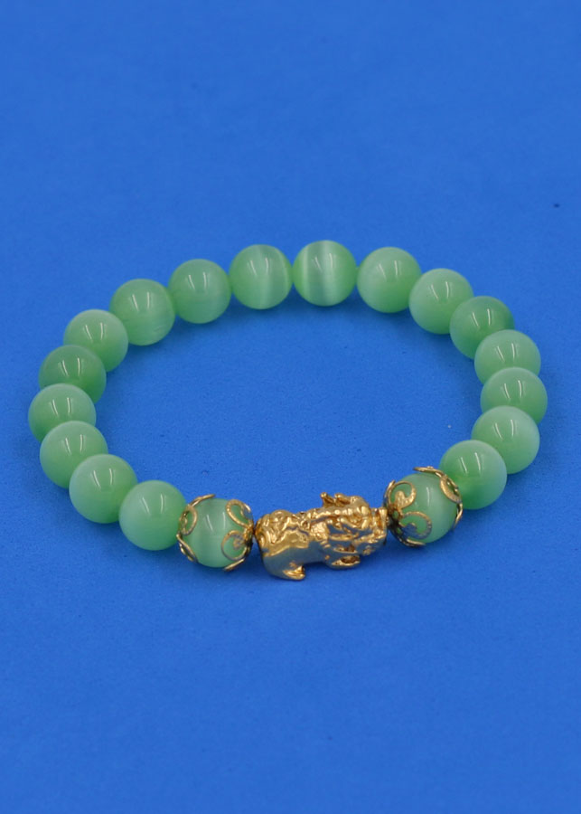 Màu xanh lá luôn đem lại cho ta cảm giác thoải mái tự nhiên nó là tượng trưng của hoà thuận, phát triển cùng với sự tươi mát, màu mỡ. Màu sắc này cũng còn tượng trưng cho sự thông thái.Là màu sắc mang lại cảm giác an toàn và yên ổn. Các bạn có thể thấy các đèn tín hiệu trong giao thông sử dụng màu xanh để báo hiệu an toàn cho các phương tiện di chuyển. Màu xanh của đá mắt mèo này còn mang đến sự nhẹ nhàng với đôi mắt nó mang ý nghĩa của sự hy vọng và phát triển.Đá Mắt Mèo phong thuỷ màu xanh lá rất hợp với người mệnh Hoả nó sẽ mang đến bạn cảm giác tràn đầy sức sống, tươi mát giúp bạn thoải mái trong công việc kinh doanh và học tập.