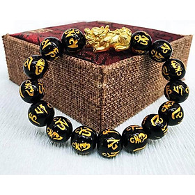 Vòng đá thạch anh đen khắc kinh phật màu đen tinh tế giúp mang lại may mắn cho chủ nhân