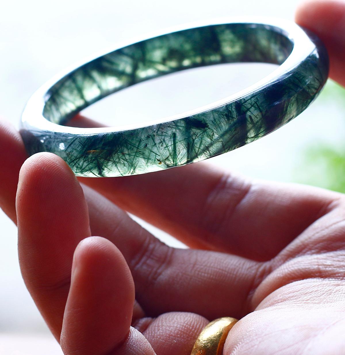 Vòng nguyên khối đá thạch anh tóc xanh bản hẹ - Hợp mệnh mộc, mệnh hỏa | Ngọc Quý Gemstones |