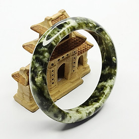 Vòng tay Nữ Đá Cẩm Thạch mới TR Lý 57 mm x cọng 7,5mm Màu Xanh lý tươi trắng 2 bên đều vòng đẹp Nữ 55kg - 64kg đeo đẹp món quà tặng chính mình