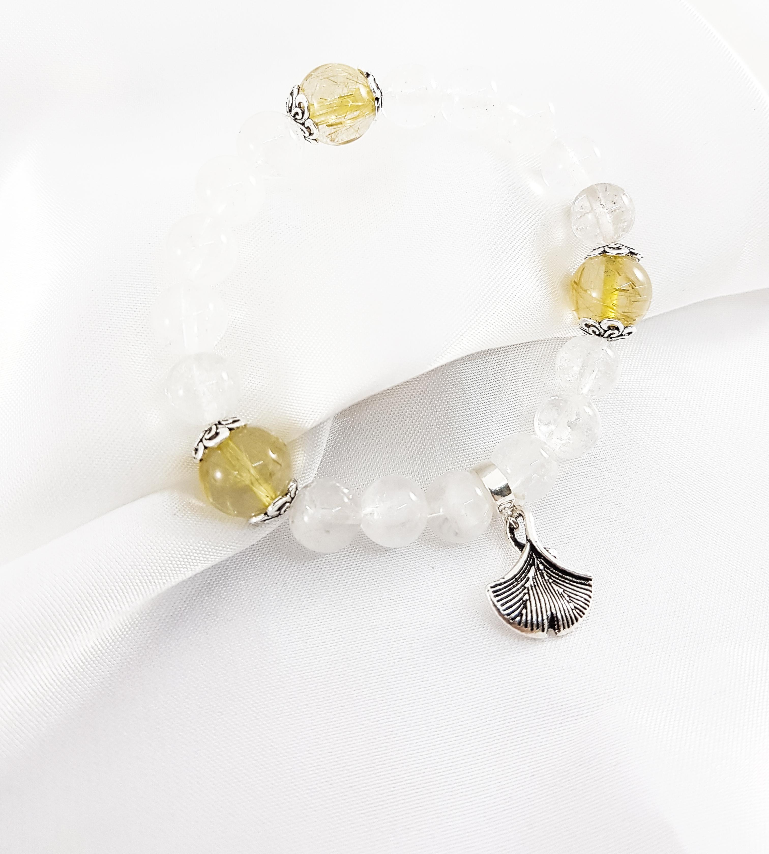 ✨Vòng tay mệnh kim, thủy đá thạch anh ưu linh trắng mix đá thạch anh tóc vàng