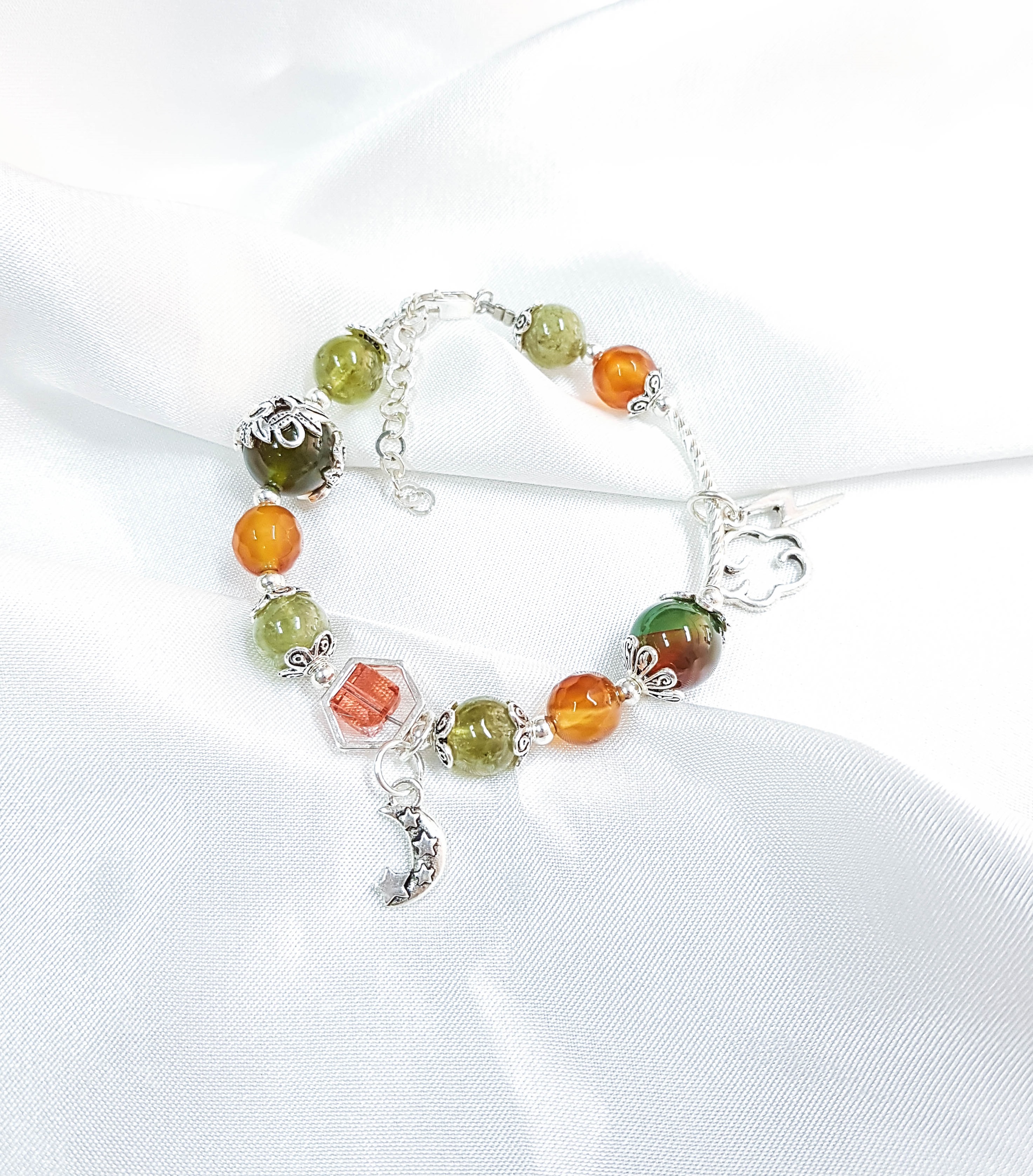 Vòng tay mệnh mộc, hỏa đá ganet xanh, đá mã nảo mix đá pha lê+ charm mây, trắng LAT.97Vòng tay mệnh mộc, hỏa đá ganet xanh, đá mã nảo mix đá pha lê+ charm mây, trắng LAT.97