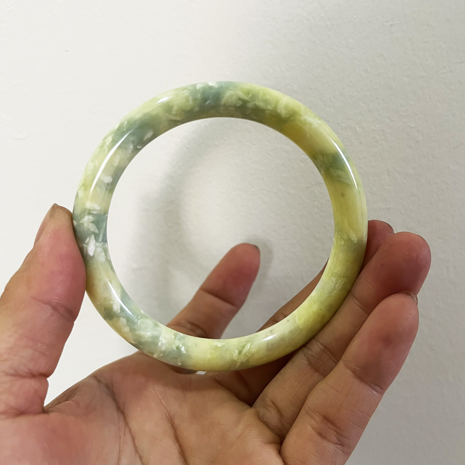 1. Chất liệu: Ngọc Serpentine 100% tự nhiên khai thác và chế tác tại Yen bai, đặc biệt phù hợp cho người mệnh Hỏa &Mộc 2. Kích thước: Size 6.7 cm tương đương với chu vi tay