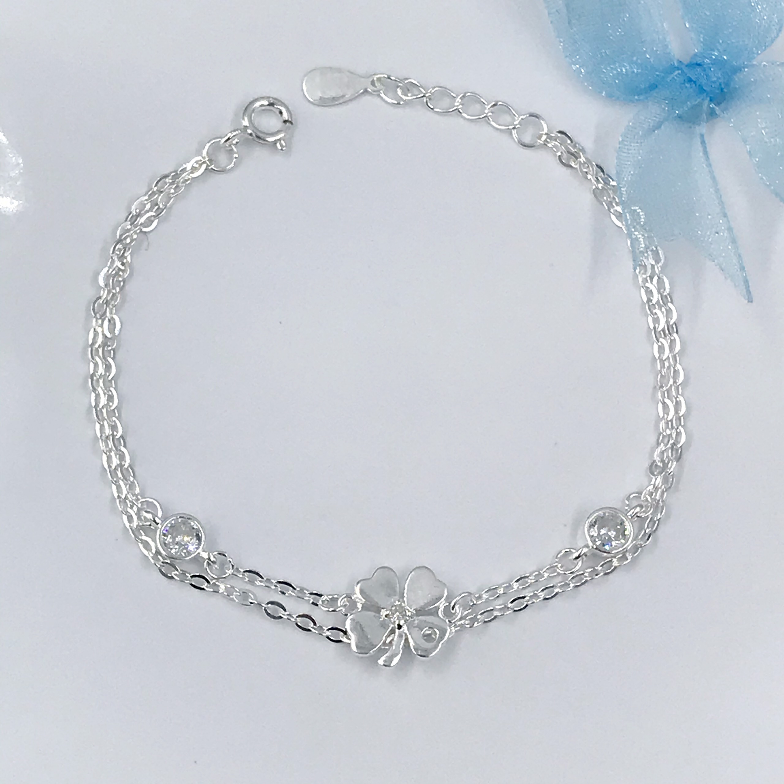 ✨Vòng Tay Nữ Bạc 925 Dây Kép Cỏ 4 Lá May Mắn Đính Đá Cao Cấp BẠC HIỂU MINH LTU552