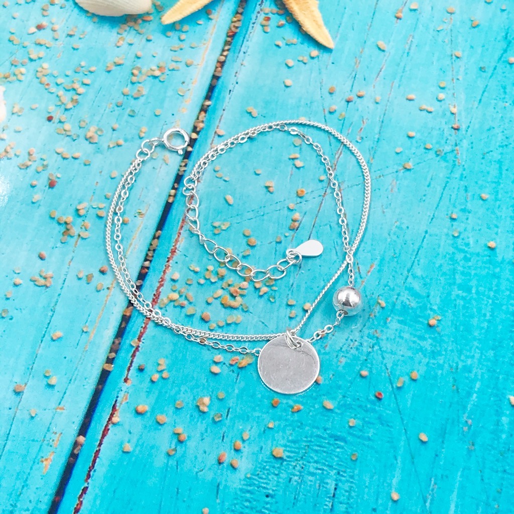 Trang sức vòng tay nữ thiết kế đơn giản đính hình tròn nhỏ có thể khắc chữ trên đó, Sản phẩm đẹp tinh tế và cá tính.