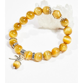 Vòng tay thiên nhiên đá mắt hổ vàng tâm phối charm bạc - Hợp mệnh kim, thổ | Ngọc Quý Gemstones |