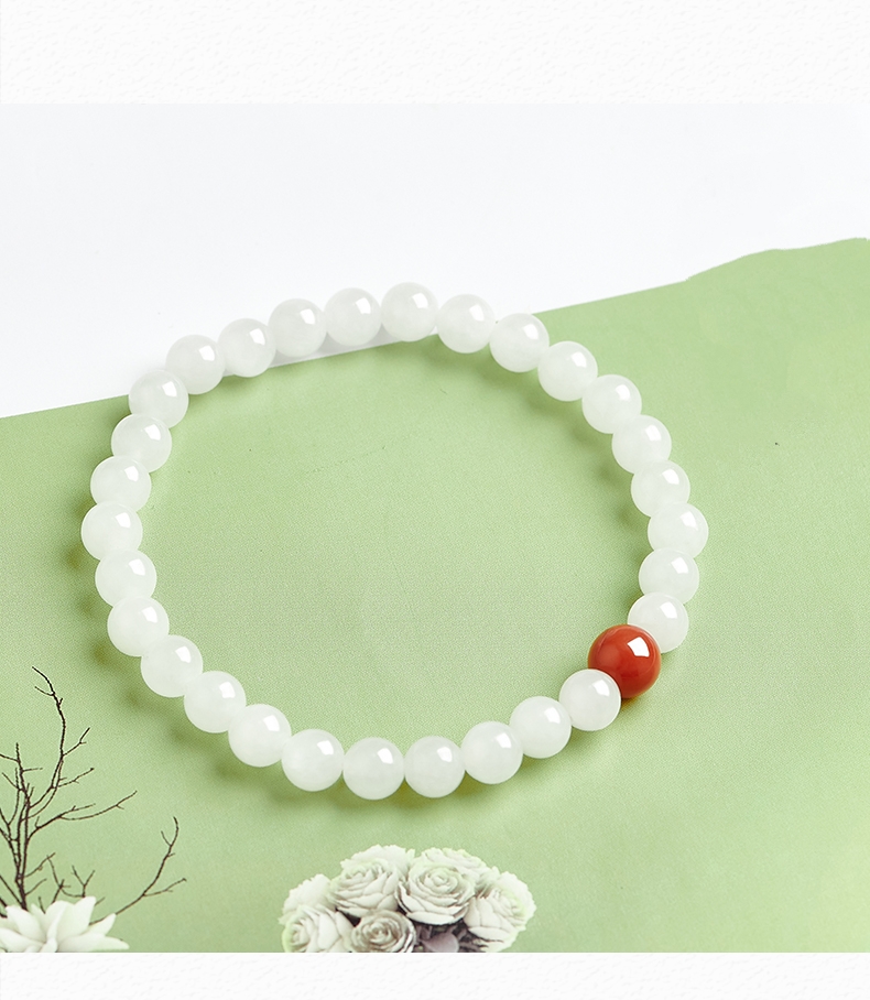 ✨Vòng tay phong thủy, vòng tay may mắn đá mã não trắng mix 1 hạt đá thạch anh đỏ