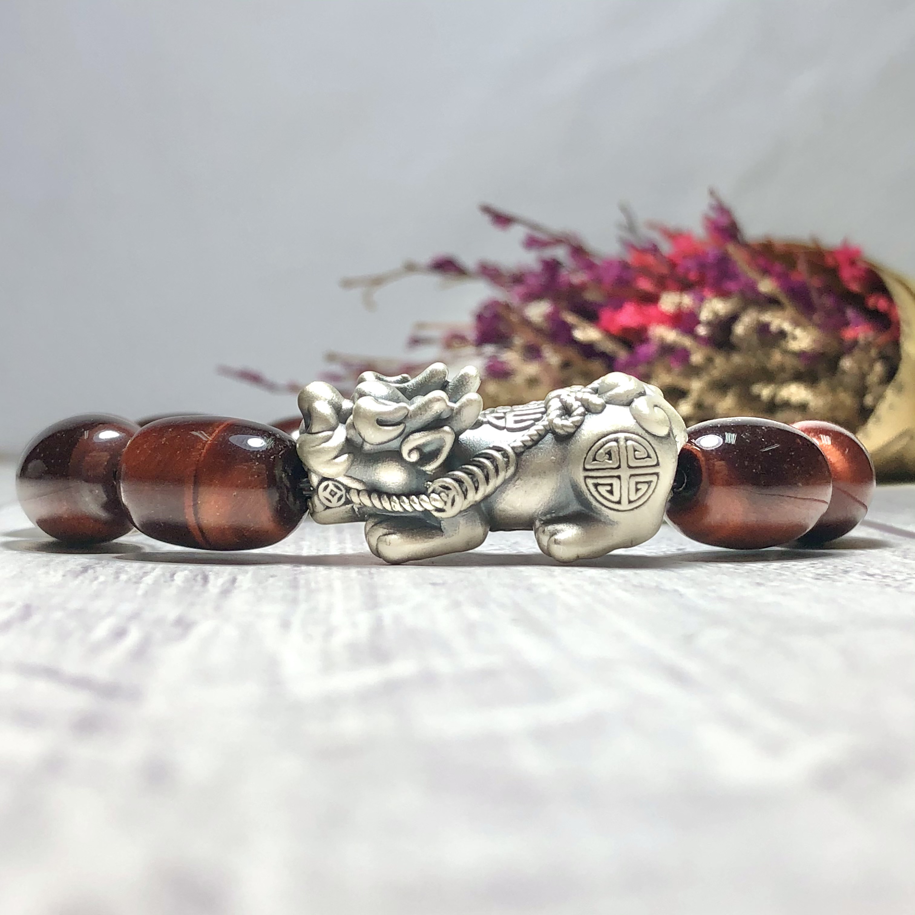 Vòng tay phong thủy đá mắt hổ nâu đỏ phối tỳ hưu - Hợp mệnh thổ, mệnh hỏa | Ngọc Quý Gemstones |