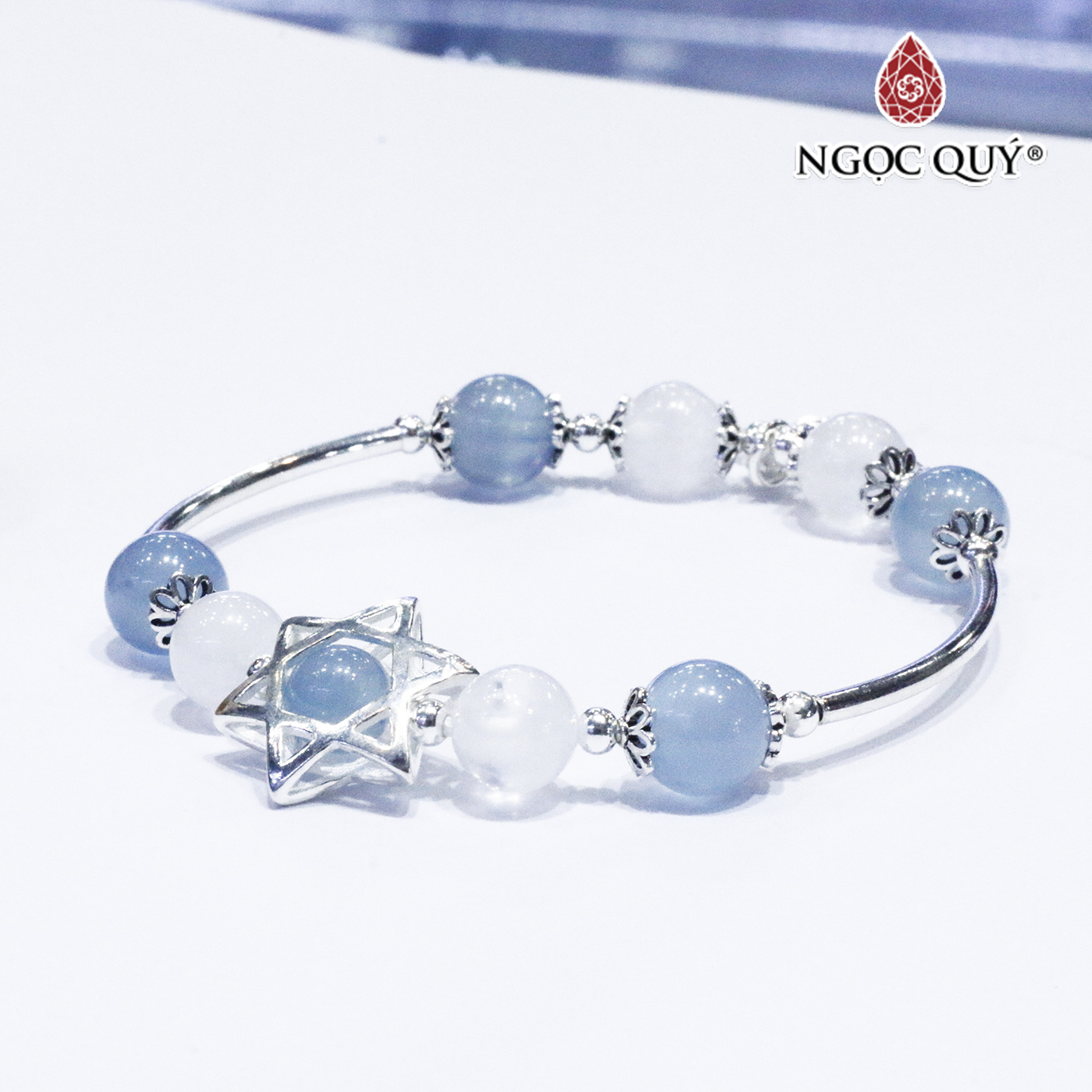 ✨Vòng thạch anh ưu linh trắng phối aquamarine charm bạc - Ngọc Quý Gemstones