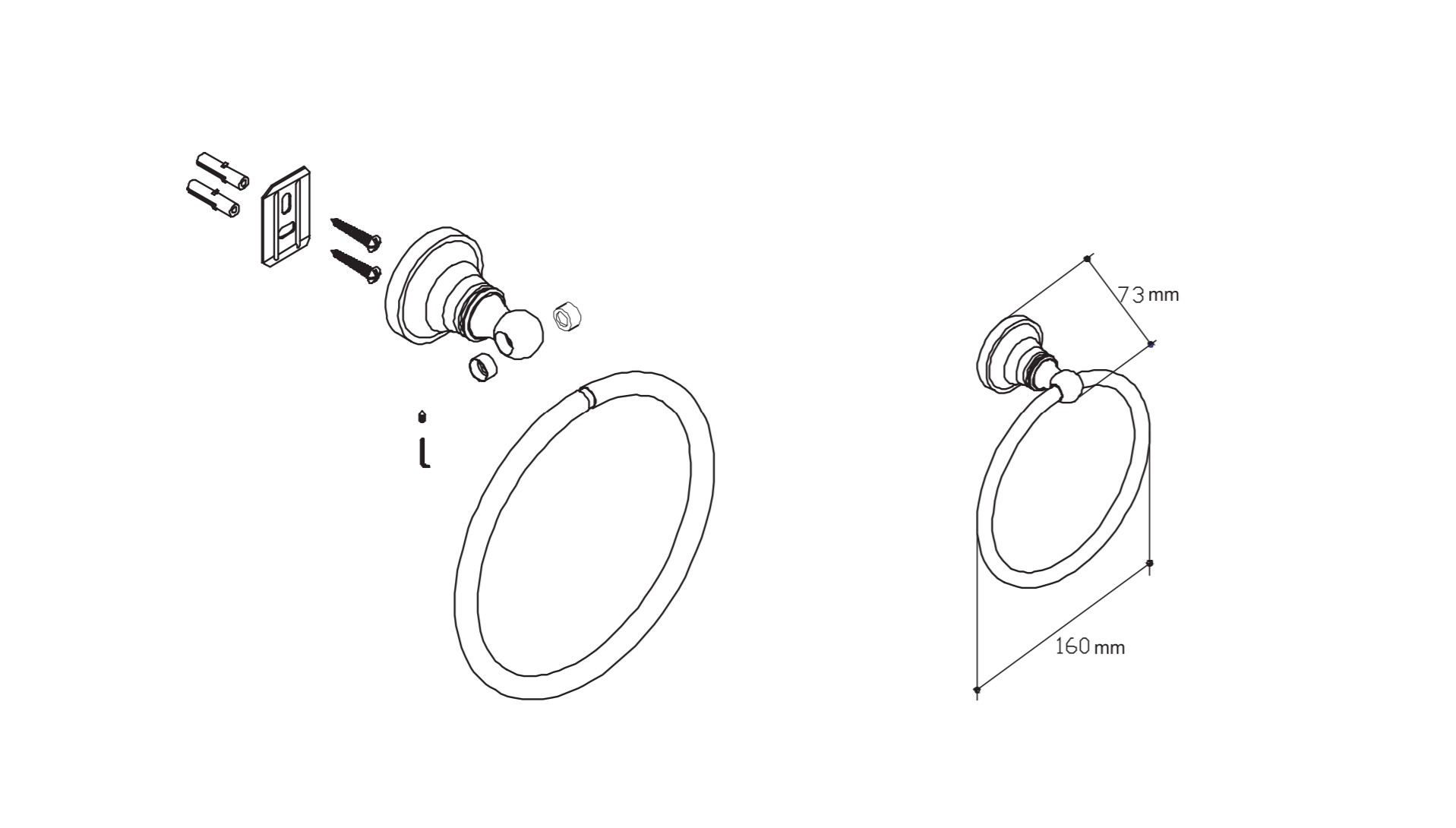 Vòng treo khăn Ecobath EC218-06 màu đen | Phụ kiện phòng tắm #vongtreokhan #phukienphongtam #ecobath