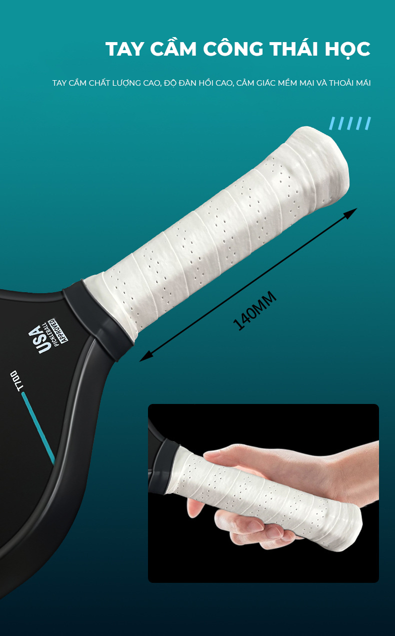 Vợt Pickleball T700 Pro được sản xuất theo tiêu chuẩn USSA Mặt vợt carbon T700 Pro 16mm