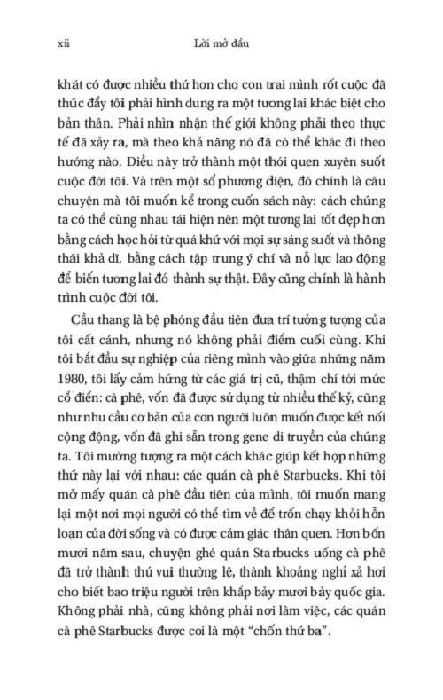 Chúng ta nợ nhau điều gì? Làm sao chúng ta truyền động lực, tài năng, thậm chí nỗi đau, vào những thứ còn ý nghĩa hơn cả thành công cá nhân? Và trách nhiệm của chúng ta ở nơi chúng ta sống, làm việc, và vui chơi là gì? Đây chính là những câu hỏi mà Howard Schultz luôn mang bên mình từ khi lớn lên ở khu nhà Brooklyn và trong khi xây dựng S từ 11 cửa hàng thành một trong những thương hiệu biểu tượng của thế giới.