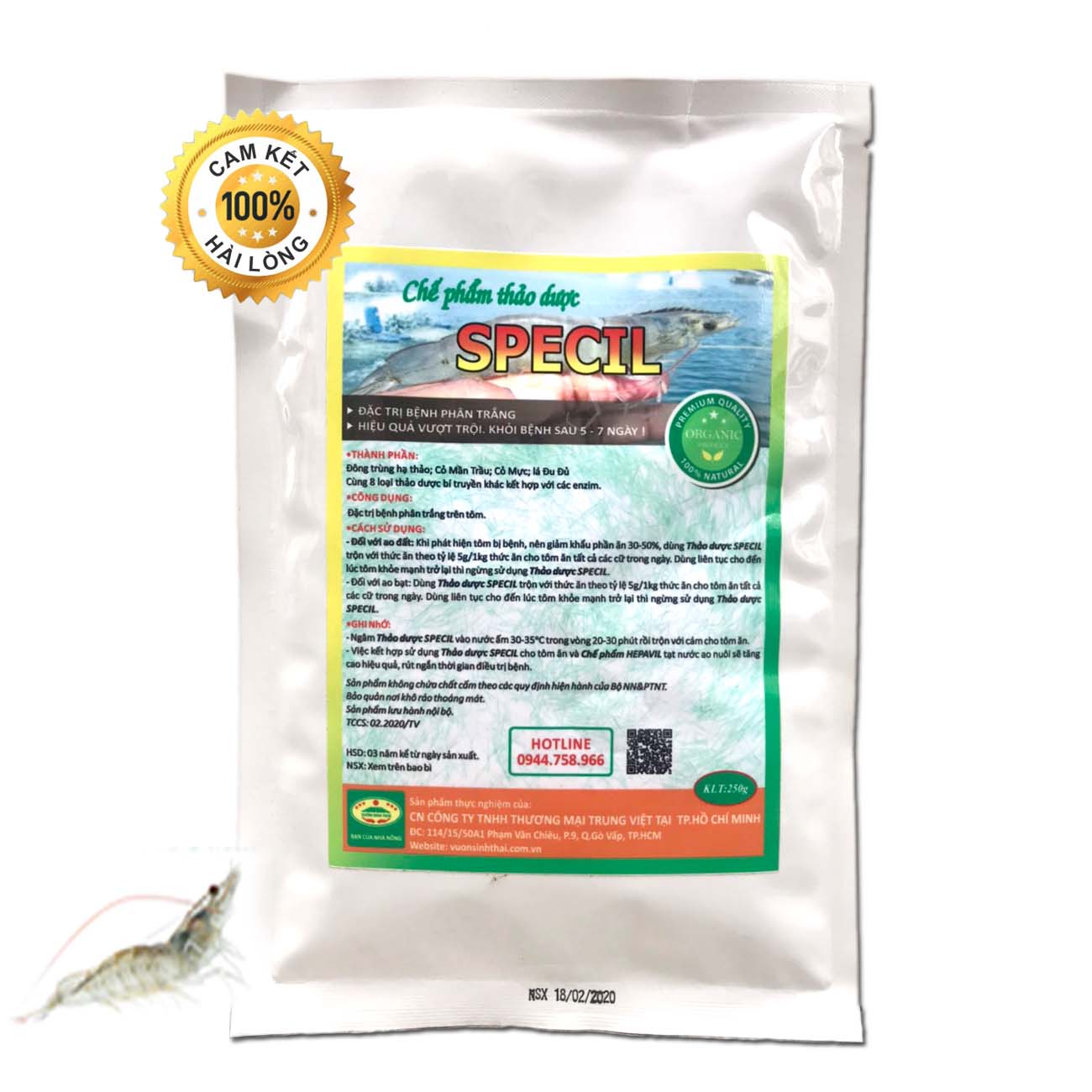 Chế phẩm thảo dược SPECIL ⇒ Đặc trị bệnh Phân Trắng trên Tôm ⇒ Hiệu quả vượt trội – Khỏi dứt điểm sau 5-7 ngày ! “Thảo dược SPECIL là dòng chế phẩm sinh học cao cấp