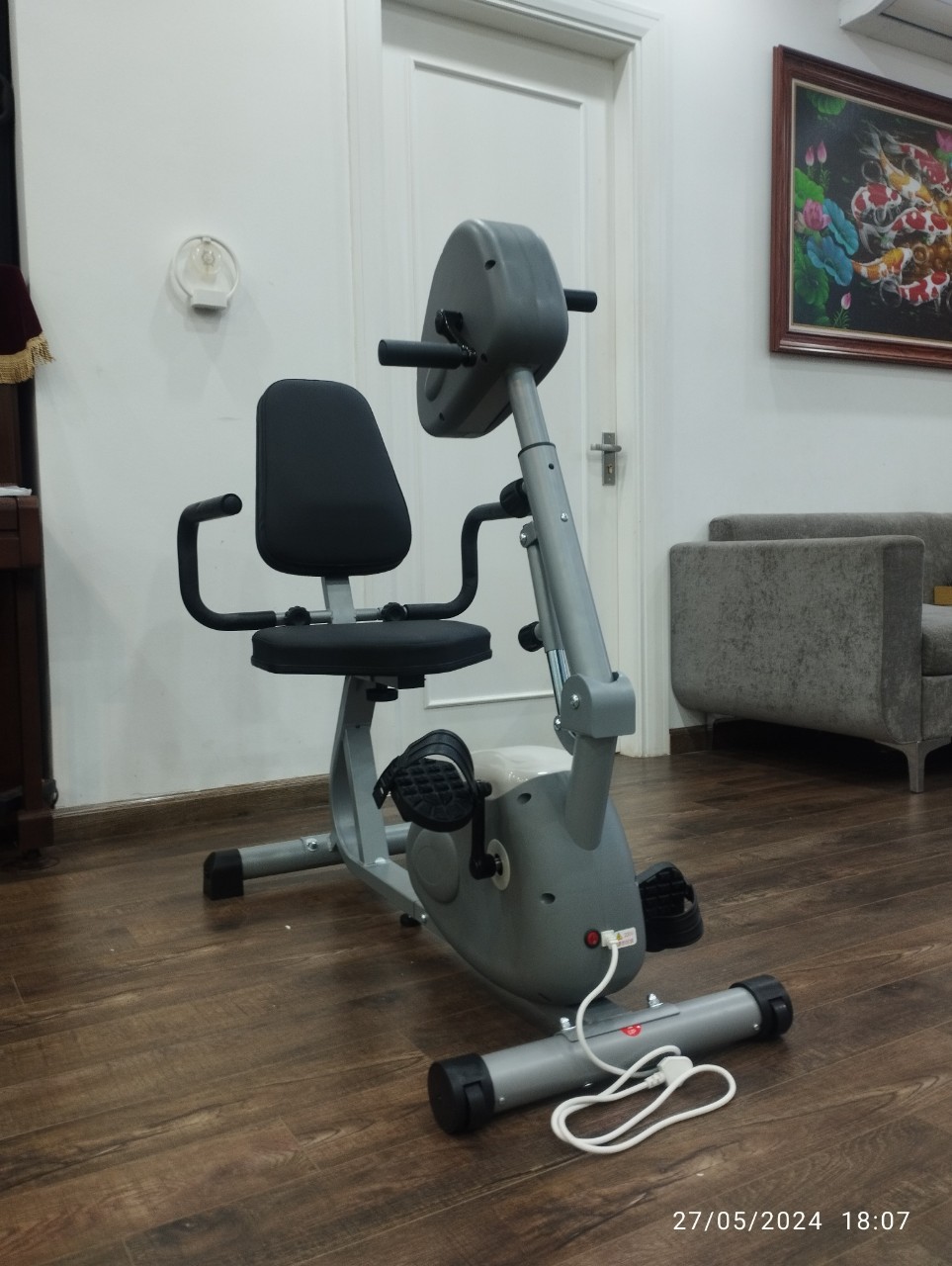 * THÔNG TIN CỦA SẢN PHẨM: Màu sắc: Xám Kích thước sản phẩm: 110 x 85 x 45cm Trọng lượng sản phẩm: 16 kg Có đồng hồ và cảm ứng nhịp tim * PHÂN