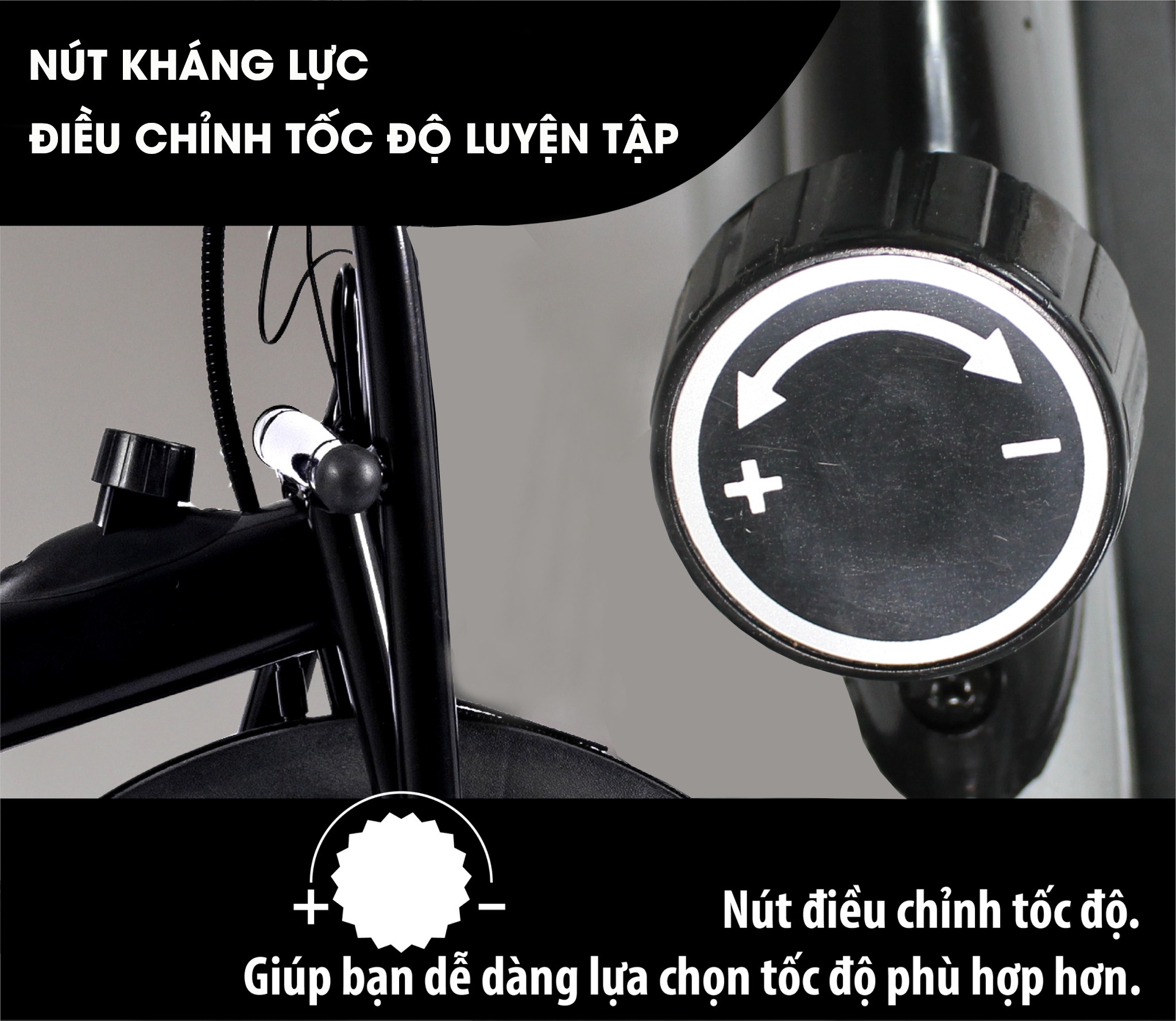 • Nút vặn điều chỉnh độ kháng lực: Tùy theo nhu cầu sử dụng và sức khỏe của mỗi người mà có thể điều chính ở các mức độ khác nhau theo ý muốn.