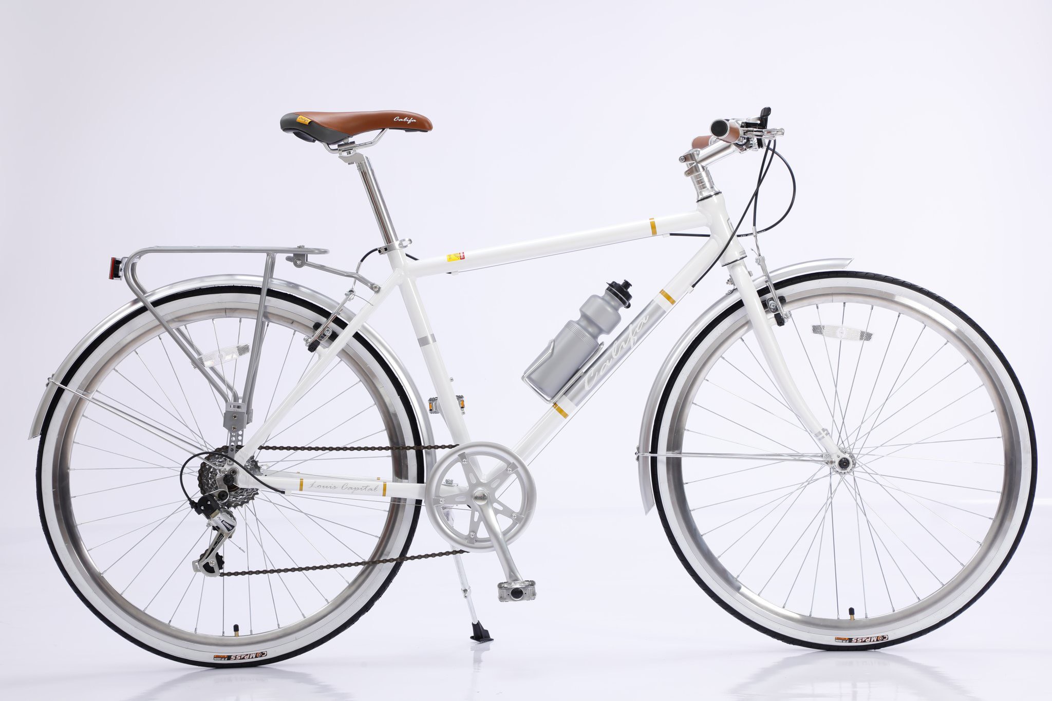 CALIFA Louis Capital Kết cấu khung nhôm cùng thiết kế nhỏ nhắn giúp xe linh hoạt khi di chuyển trong phố. Được trang bị bộ đề cho Shimano 7 tốc độ đem đến những chuyển