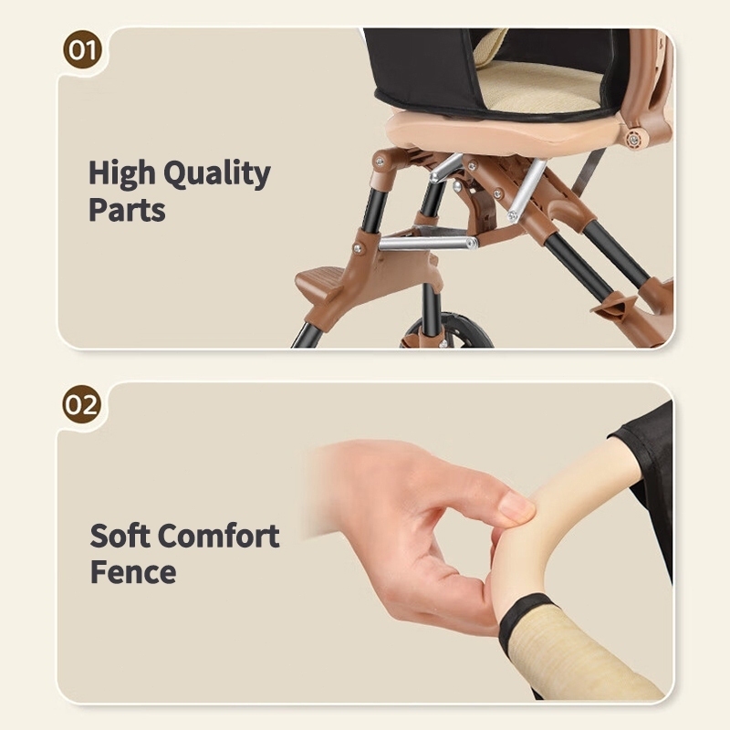-Ghế ngồi xoay được 2 chiều, cả 2 chiều đều có ghế để chân tiện lợi kèm đai an toàn