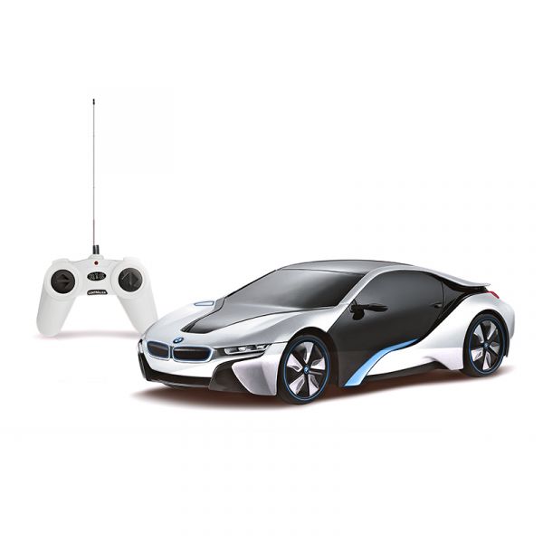 01 xe BMW i8 Bạc và tay cầm điều khiển từ xa.