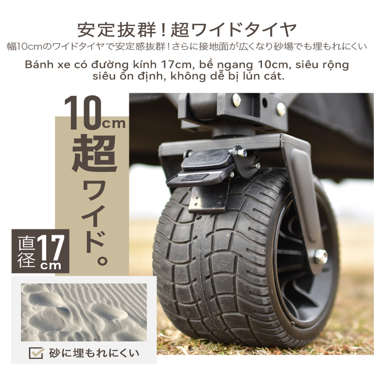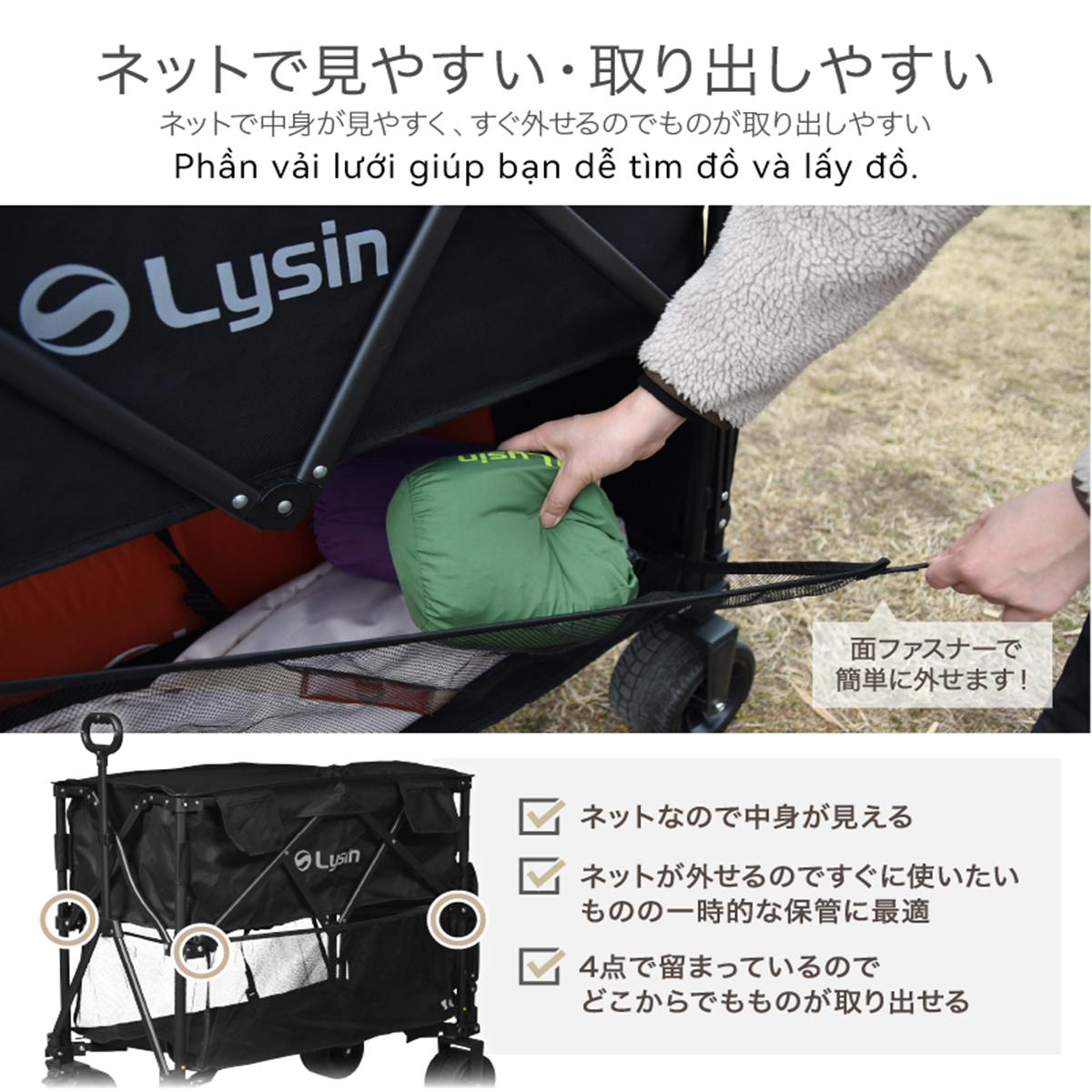 ✨Xe kéo dã ngoại 2 tầng ngoài trời du lịch cắm trại, picnic đa năng bánh xe rộng có khóa cố định dung tích 300l gấp gọn được camping