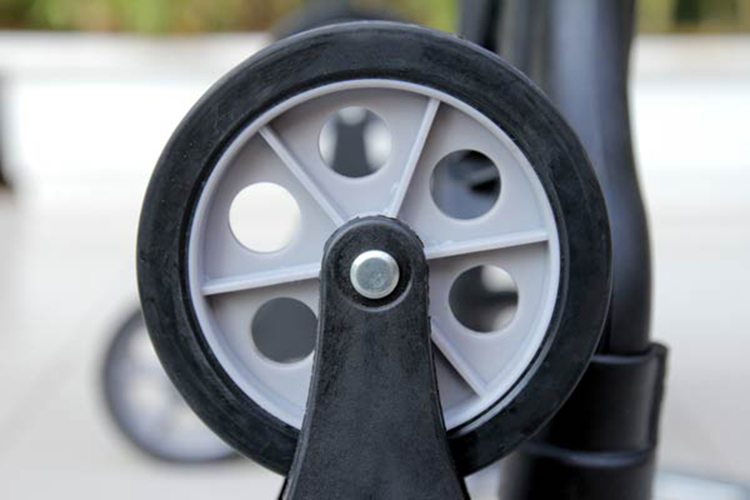 Dưới mỗi bánh xe thiết kế nhựa cao cấp có độ ma sát cao, bám rất chắc vào sàn nhà, sàn bậc cầu thang không bị trượt. Xe leo lên và đi xuống cầu thang một cách dễ dàng.