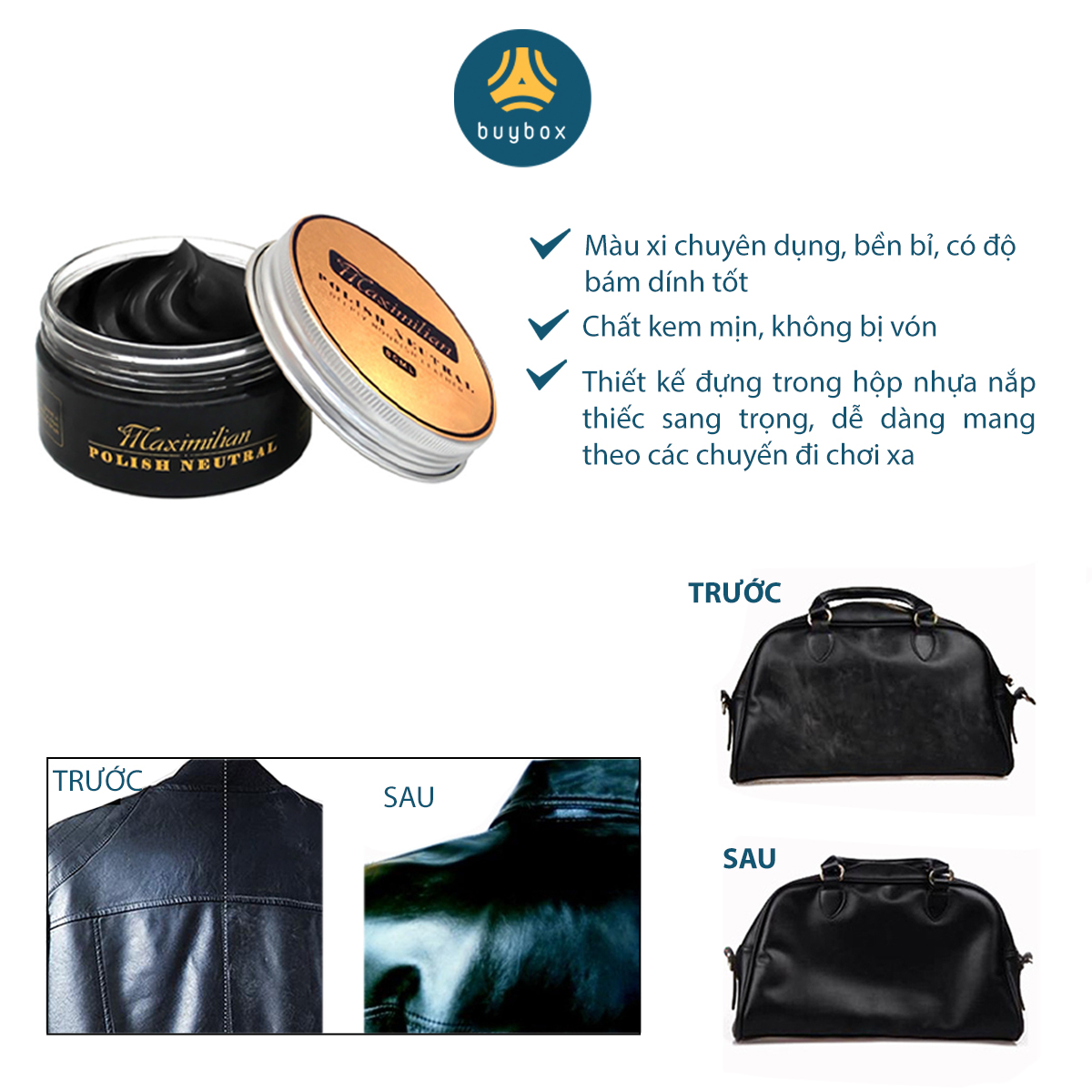 5 lý do tại sao bạn nên sử dụng xi đánh giày của buybox để đôi giày da của bạn trông như mới:Giày không được bảo quản đúng cách, để lâu ngày bị nổ gây mất thẩm mĩ.Chất lượng của lớp da bị ảnh hưởng...