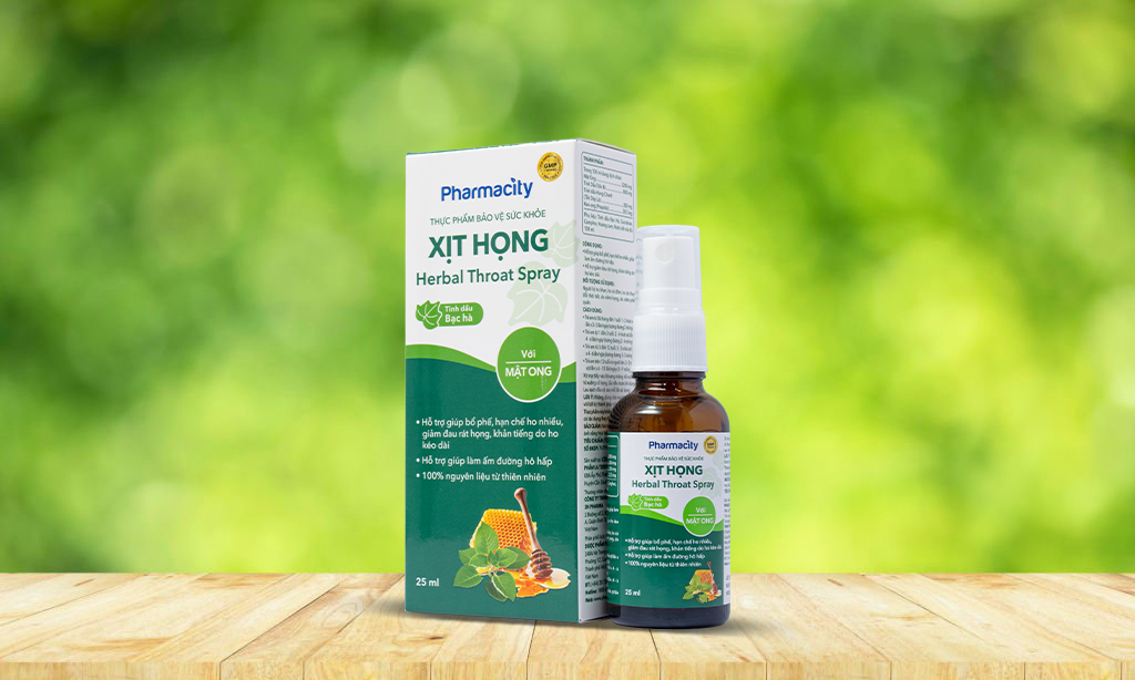 ✨Xịt họng thảo dược Pharmacity Herbal Throat Spray hỗ trợ giảm đau rát họng, khản tiếng (Chai 25ml)