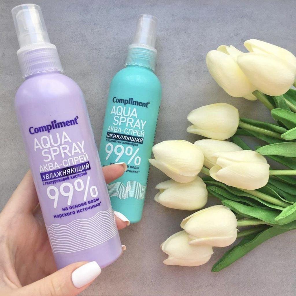 Xịt khoáng Aqua Spray Hyaluronic Acid - Compliment Chứa tới 99% nước khoáng tinh khiết (nằm ở độ sâu 22 mét trong khu vực sinh thái gần bán đảo Brittany, Pháp) nên rất giàu khoáng