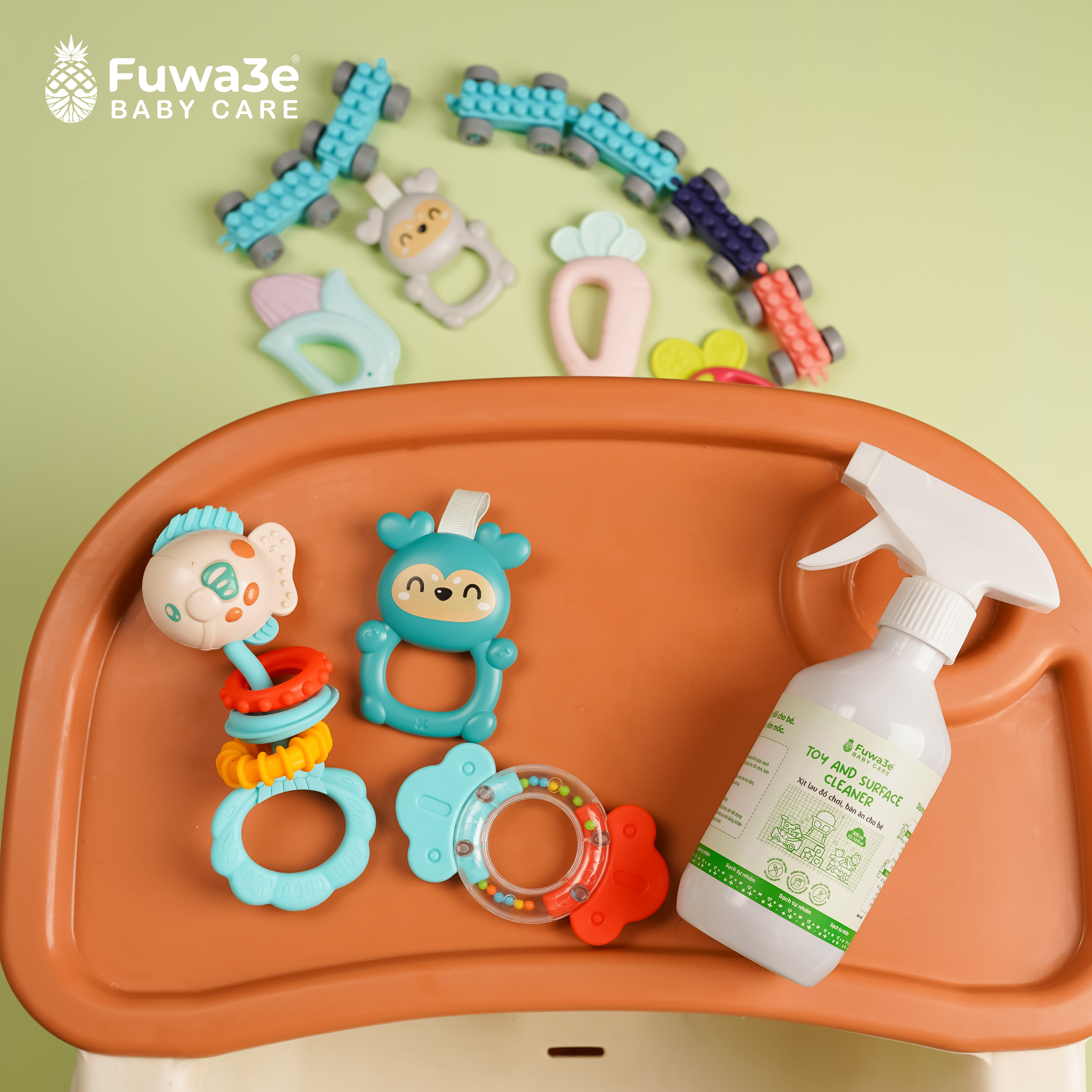 Hiểu được điều này, Fuwa3e đã sản xuất dòng nước rửa đồ chơi, lau bàn cho Fuwae3 dành riêng cho bé. Sản phẩm được sản xuất với nguyên liệu hoàn toàn tự nhiên với thành phần chính là Enzyme sinh học lên men từ vỏ dứa. Nước rửa đồ chơi Fuwa3e mang đến tính năng vượt trội từ Enzyme sinh học như khử khuẩn, làm sạch, khử mùi hôi…