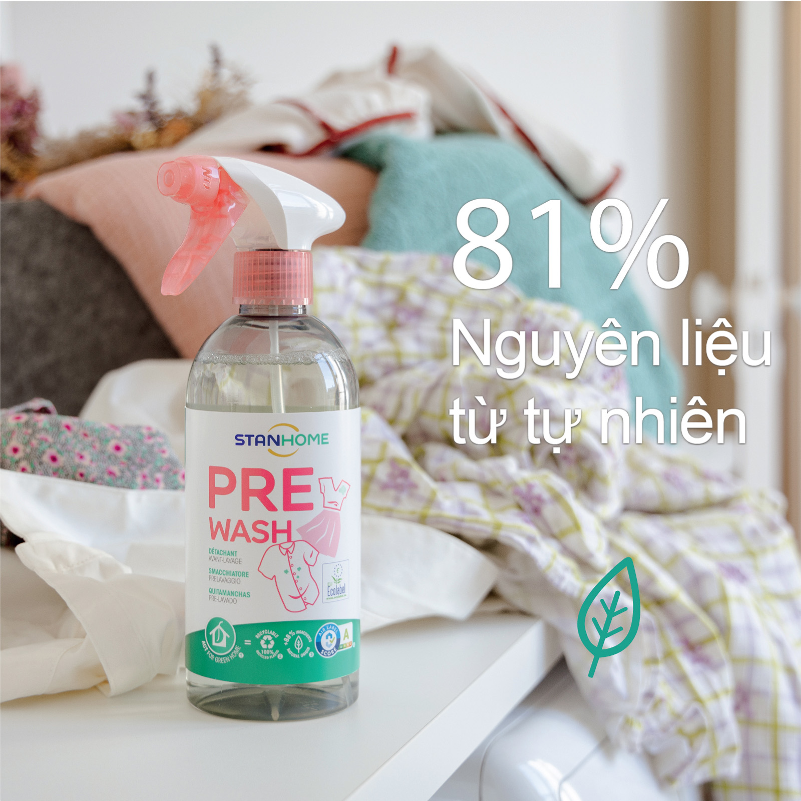 Xịt xử lý vết bẩn trước khi giặt Stanhome Pre Wash Ecolabel 500ml #quanaotreem #aosomi