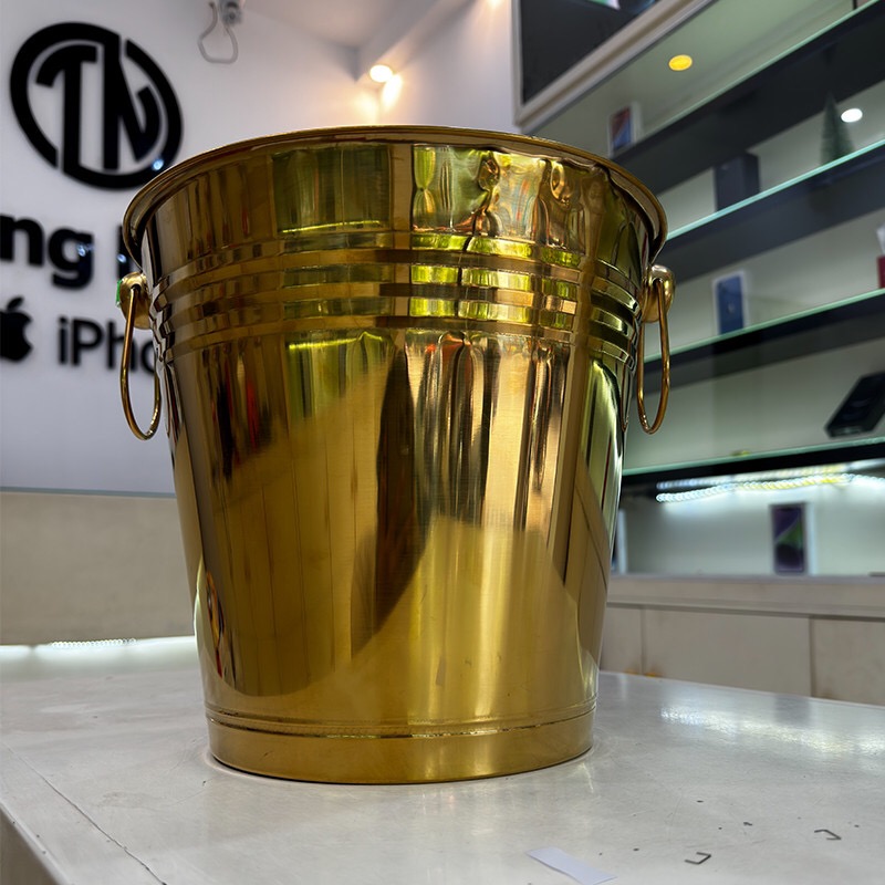 . Xô Ngâm Vang làm bằng Thép Không Gỉ, dung tích lớn 9L, rất phù hợp cho các bữa tiệc. Với màu vàng sang trọng, sản phẩm này sẽ tạo điểm nhấn cho không gian tiệc của bạn.