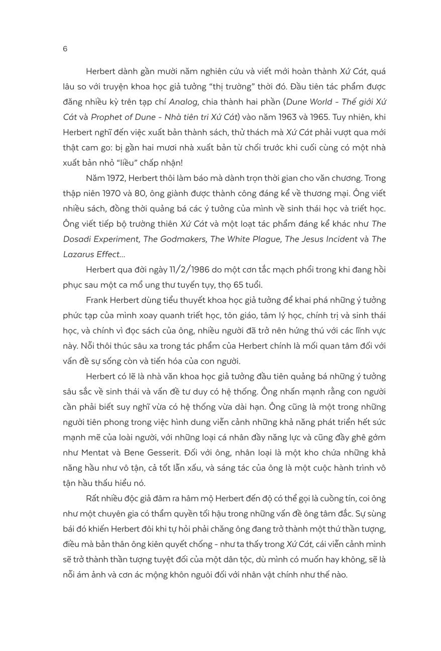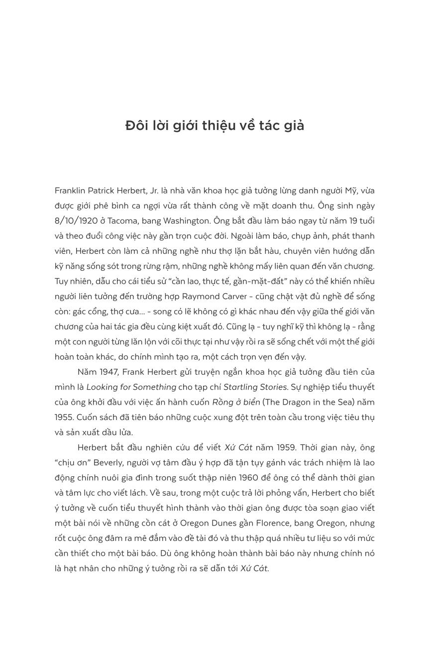 Là một trong những cuốn tiểu thuyết khoa học giả tưởng bán chạy nhất mọi thời đại, Xứ Cát không chỉ là lựa chọn đối với những tín đồ của Chúa nhẫn, Chiến tranh giữa các vì sao… mà còn chinh phục độc giả đủ mọi lứa tuổi, mọi tầng lớp và sở thích bởi sự đa dạng và phức tạp của con người và không gian trong truyện, bởi sự tinh tế trong xây dựng tâm lý, bởi sự hấp dẫn, căng thẳng và bất ngờ của cốt truyện, bởi sự độc đáo và thú vị của khối lượng kiến thức khổng lồ cũng như bởi sự hấp dẫn trong những tư tưởng về tôn giáo, về tự do, về tình yêu, về sự sống và cái chết…