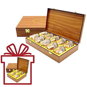 Hộp gỗ chữ nhật kích thước 31x22x8 (cm) Gồm 12 phần yến, mỗi phần 1,5 g + 12 gói đường phèn, mỗi gói 7 g Tặng kèm 12 hũ thủy tinh tiệt trùng dùng để